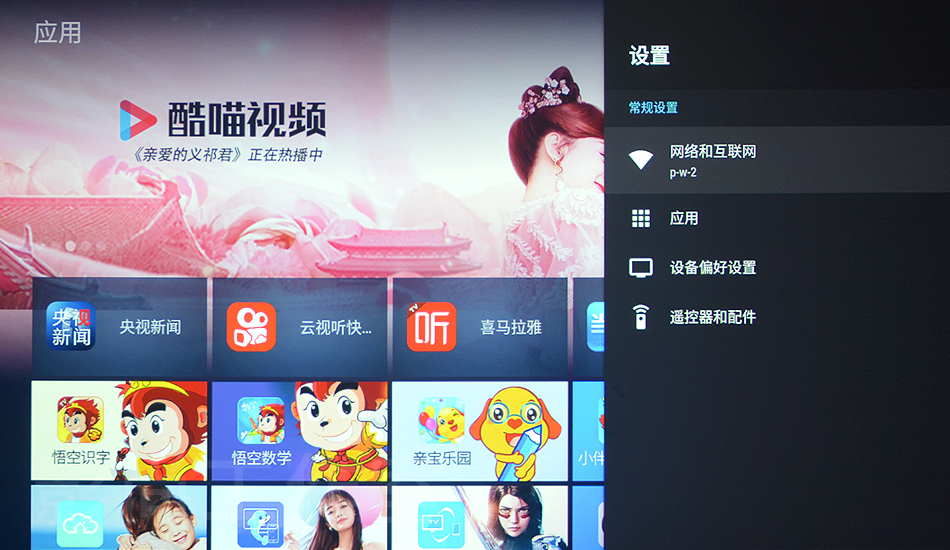 開機后直接進入系統首頁,可快速訪問影視內容、APP等