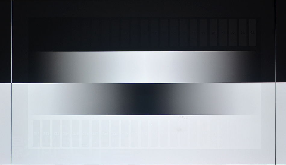灰階測試圖中黑色塊與白色塊都顯著呈現,過渡平滑