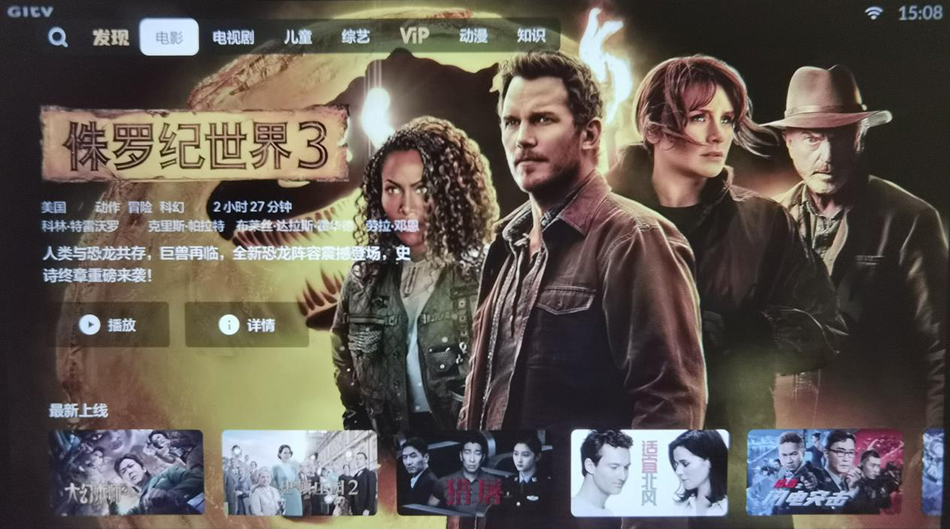 在小明Q2搭載的FengOS智能系統下,我們開機便可直達視頻內容的“瀑布流”頁面,在實際體驗的幾個小時中,筆者不斷進行了影視劇的切換與主頁的進退,遙控器與投影機的響應均十分及時,無卡頓現象。