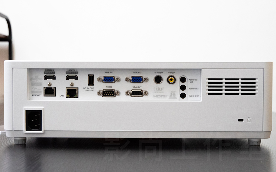 接口方面,這款產品的配備非常全面強大,支持現在所有主流視頻、音頻和控制接線。輸入有1個HDMI 2.0、1個HDMI 1.4,支持藍光HDMI 3D滿足立體影像方案。還有2個VGA、1個Video、1個S-Video和2個音頻輸入。輸出則有VGA、HDBaseT、音頻。此外還有USB-A控制與供電共用以及RS232。值得一提的是,它還內置了2個10W音響,聲音足夠洪亮。應對所有應用場景所需。