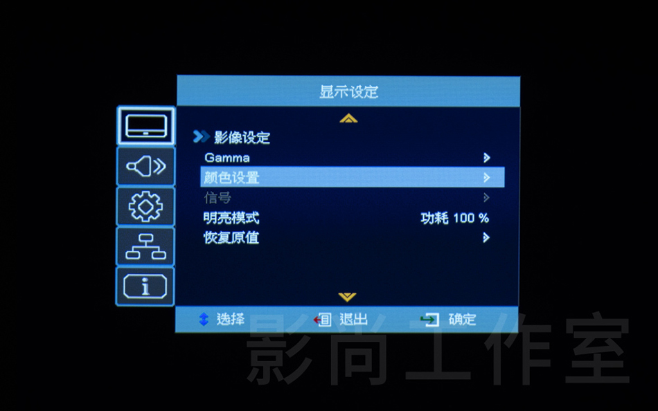 用戶在選擇模式后,還能進階地進行Gamma、色彩等各項微調。在顯示模式中還可以調整光源的功耗,用戶可以在長周期內確保投影機亮度與品質保持前后一致。