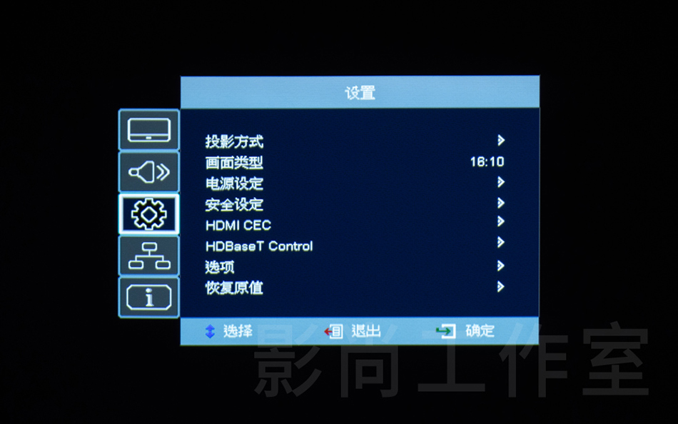 在“設置”菜單中可以設定畫面類型、電源、安全等參數,以及HDMI和控制端口的設置。在“網絡”菜單中則可以設置投影機的網絡IP,滿足多臺集控的項目所需。