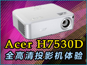 對Acer H7530D投影機進行網頁、靜態圖片、高清視頻、專業測試圖等專業性的測試。