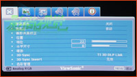 從外觀來說,優派PJD7383i投影機的外形設計并沒有較為突出的地方,與以往或者同類機型的外形設計都較為相似,整體以矩形為主,周邊角以弧形過度。優派PJD7383i投影機以黑色為主,機身頂部材質一半為黑色金屬質感條紋,另半部為黑色鋼琴漆塑料材質,在菜單設計方面,優派PJD7383i投影機的菜單設計屬于傳統菜單風格。
