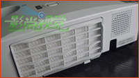 ;另外,日立延續以往的獨特的橙色按鍵設計,三個橙色按鍵,具有時尚絢麗外觀的同時,別具一番溫馨的氣息;機身上還有電源、溫度、燈泡三個指示燈;機身上方還有“遮屏快捷”按鈕,按下此鍵可以迅速關閉投影顯示畫面,但保持投影機運行,重新按下此鍵,畫面即可恢復,方便而且實用。總的來說,這款產品小巧、輕便、時尚,是眾多消費者的理想機型之一。