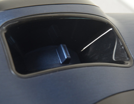 Pro9000的外形產生多大的影響,而其外形設計也是延續了優派家用投影機一貫的外形風格。機身仍是以質感十足的磨砂塑料為主,機身頂部有一半藍色的區域用金屬材質加以點綴,配合鏡頭四周的藍色聚焦旋鈕,藍黑搭配的整體感得以很好的表現。與Pro之前的幾款機器相比,作為老大哥的Pro
