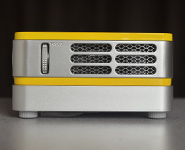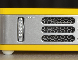Q5是傳統投影廠商麗訊推出的系列微投中的第二款,其延續了上一代的整體風格,從外形設計上著力打造出科技與時尚的完美結合,同時為了迎合更多人的喜好,Q5共有象牙白、商務黑、中國紅、亮海藍以及熒光黃5個顏色可供用戶選擇。今天來到影尚視覺工作室的這款Q5就是熒光黃顏色的。 |