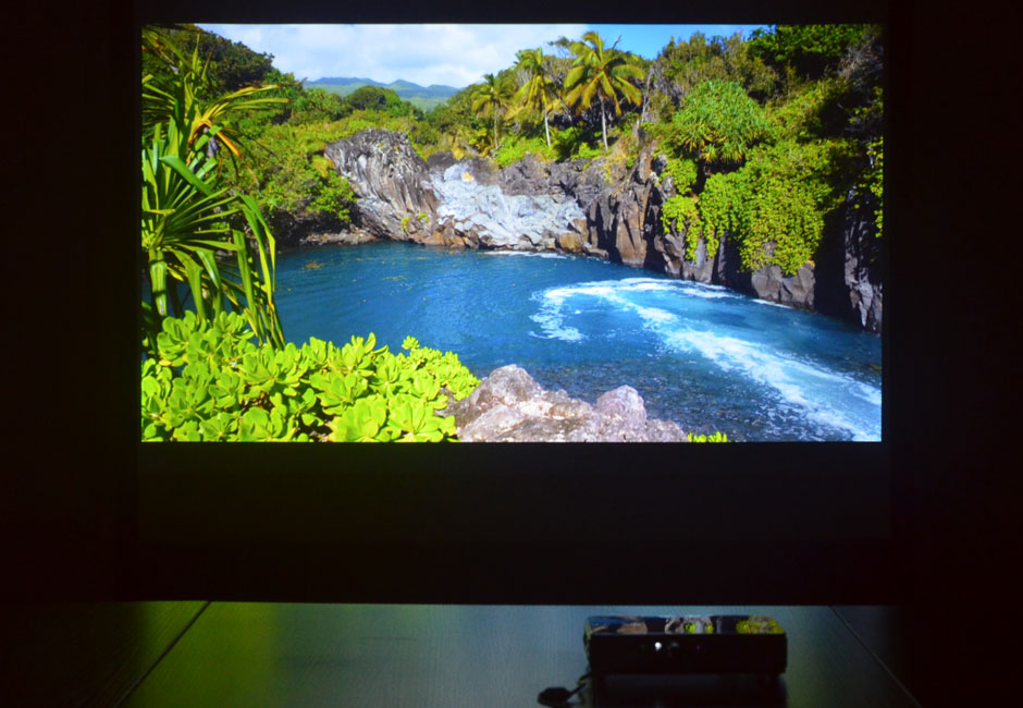 實境照片——小體積的外觀下Q5的投射效果看上去絲毫沒有打折,看看上面的風景圖效果。(畫面大小80寸) |