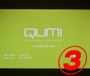 Q5的無線配件插入Q5的USB插槽,如上圖1;第二選擇Q5的播放模式為WIFI顯示,如圖二;第三,選擇WIFI模式之后會出現圖三的畫面,這時通過手機或pad的無線連接搜索無線信號,搜索到Qumi5_AP并點擊連接;第四,通過手機或pad下載Mirrorop
