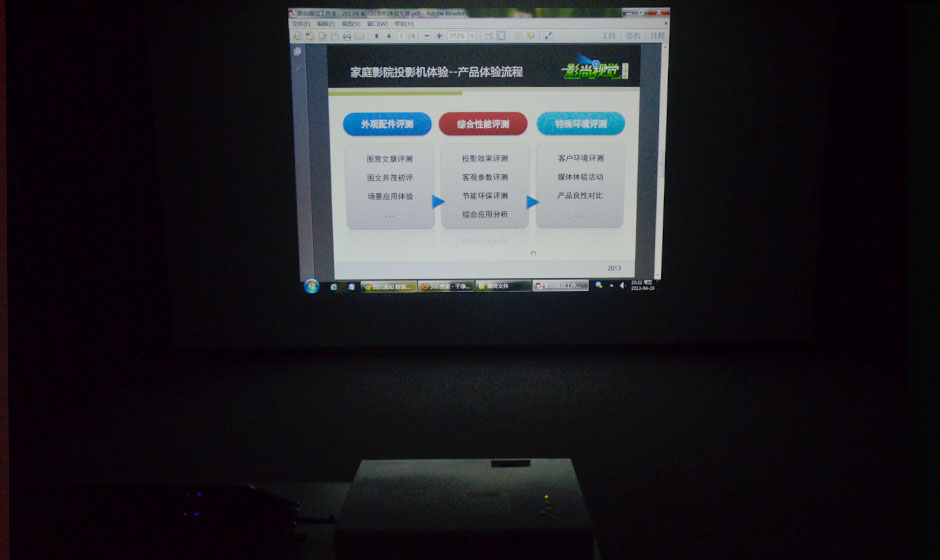 測試畫面——常用辦公軟件測試,PDF文檔測試,C3270的投影距離中規中矩,不過文檔顯示效果還是值得稱贊的。(畫面大小150寸)