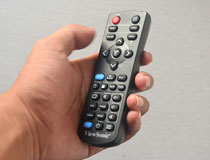 通過左側的圖片我們不難發現,PJD6353的設置菜單十分大膽的做了大刀闊斧式的精簡,其他產品中那些臃腫與繁瑣的設置選項在這個設置菜單中已經毫無蹤影了,而對于大量設置功能的精簡,我們在體驗的過程中竟然沒有感到任何的不方便,反而日常的設置與操控變得更加的舒適與自然了。這就讓我們感覺到平時我們其實是被復雜的設置菜單慣壞了,那些在商教演示中那些不經常使用的操作占據了大幅的位置,在PJD6353成功的精簡之后,便給我們帶來了清爽、舒適、便利的操控體驗。除去設置菜單之外,PJD6353使用了投影機最常使用的機身頂部操作按鍵與遙控器兩種操控方式,機身頂部按鍵依舊采用了精簡的設計,9枚小小的按鍵呈正方形排列,與優派的LOGO形成呼應,按鍵的手感也十分的舒適,而按鍵的精簡自然也帶來的操作步驟的增加,這也是不可避免的;遙控器使用的目前比較流行的小型化設計,正常大小的手型握持感十分舒適,快捷鍵與操控健設計也比較合理,操作靈活。 |