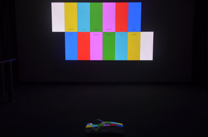 從綜合的參數上來看,D912HD在畫面表現上無疑擁有不錯的話語權,但究竟真實效果與廠商的宣傳存在多大的差距呢?我們一起來通過專業的測試圖樣觀看一下,看看D912HD在亮度、對比度、分辨率上的提升效果,以及DLP芯片與燈泡芯能提升帶來的效果提升。測試環境選擇全黑與正常光照兩組環境,信號源選擇臺式機主機,連接線選擇數字信號的HDMI標配線纜,投射150英寸顯示畫面,投影屏幕選擇最為普通的白墻,測試軟件選擇SHOOT