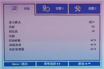 D751ST擁有著豐富的設(shè)置菜單,這個(gè)設(shè)置菜單的風(fēng)格我們已經(jīng)見到多次了,算是麗訊特有的菜單格式吧。簡約的設(shè)置界面擁有三個(gè)分菜單,分別為圖像、設(shè)置1、設(shè)置2,圖像設(shè)置菜單中囊括了常見的顯示模式、亮度、對比度、自動(dòng)成像、電腦、高級(jí)選項(xiàng)、色彩管理器共7個(gè)分設(shè)置選項(xiàng);設(shè)置1包含信號(hào)源、投影方式、影像比例、梯形校正、數(shù)字縮放、音頻、高級(jí)選項(xiàng)1、高級(jí)選項(xiàng)2共8個(gè)分設(shè)置選項(xiàng);設(shè)置2中包含自動(dòng)輸入源、無信號(hào)關(guān)機(jī)、自動(dòng)開機(jī)、投影燈模式、全部重置、狀態(tài)、高級(jí)選項(xiàng)1、高級(jí)選項(xiàng)2共8個(gè)分設(shè)置選項(xiàng)。用戶能夠根據(jù)自己的應(yīng)用環(huán)境來設(shè)置相應(yīng)的參數(shù),諸如之前提到的投影畫面校正設(shè)置、節(jié)能模式設(shè)置、3D功能設(shè)置、智能七色調(diào)節(jié)、網(wǎng)絡(luò)中控管理、輸入輸出信號(hào)源設(shè)置等等選項(xiàng)都能夠通過D751ST的菜單輕松的完成。簡單明了的設(shè)置菜單雖說操作足夠的輕松,但略顯粗糙的界面設(shè)計(jì)、過于文字話的設(shè)置選項(xiàng)都讓人感覺用心不足,或許投影廠商在菜單設(shè)計(jì)上應(yīng)該向電視機(jī)或顯示器廠商好好的學(xué)學(xué)了。