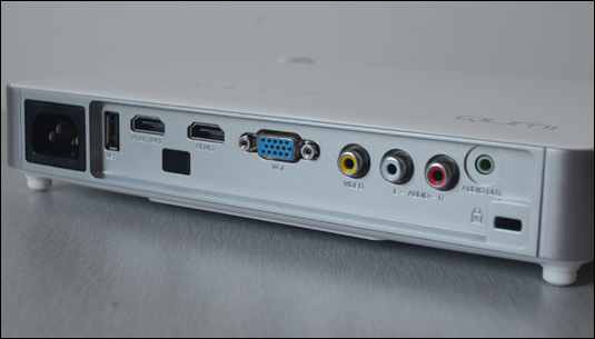變化不大,素雅的白色,高端的黑色,還是那樣惹人喜愛。其周身烤漆工藝精細(xì),設(shè)計(jì)簡(jiǎn)潔大方,討巧并個(gè)性十足;整體的外形被很好的控制在了238×180×40mm這樣逆天的尺寸,實(shí)際尺寸會(huì)比我們看到的宣傳圖片嬌小很多,方便日常商務(wù)演示使用,而機(jī)身重量?jī)H為1.4KG,相對(duì)于市面上此類流明段的產(chǎn)品,其體積稱得上是非常完美。QUMI Q7所擁有的人性化按鍵位置和眾多接口排布不僅彰顯了麗訊注重細(xì)節(jié)的企業(yè)理念,