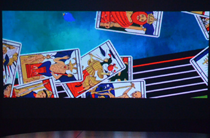 對(duì)于圖像的表現(xiàn)來說,Q7配備的第三代“亮麗彩輪”技術(shù)無疑是其比較有優(yōu)勢(shì)的地方,最新的6段色輪技術(shù)使其亮度得到提高的同時(shí),色彩表現(xiàn)更加的鮮艷,尤其是展示擁有圖像的畫面時(shí),嬌艷欲滴的畫面感受給人帶來非常不錯(cuò)的視覺沖擊。在影尚視覺工作室的體驗(yàn)過程種,Q7在整幅圖像投影顯示方面還是有著比較出色的實(shí)力表現(xiàn)的,