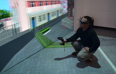沉浸式仿真實驗平臺效果展示,操作者進入正常行走、觀光狀態 |