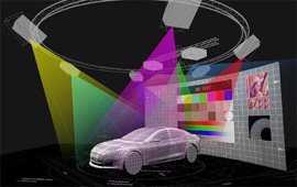 松下、特斯拉汽車公司、投影工作室合作打造了一個非常有創意的展項,用全息技術展現了最新的特斯拉包車,將復雜的產品設計、測試以及控制通過d3的媒體服務器展現16K的震撼畫面。松下的20.000lm的EVO新版投影儀PT