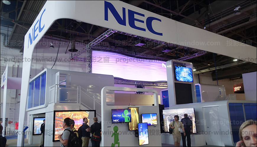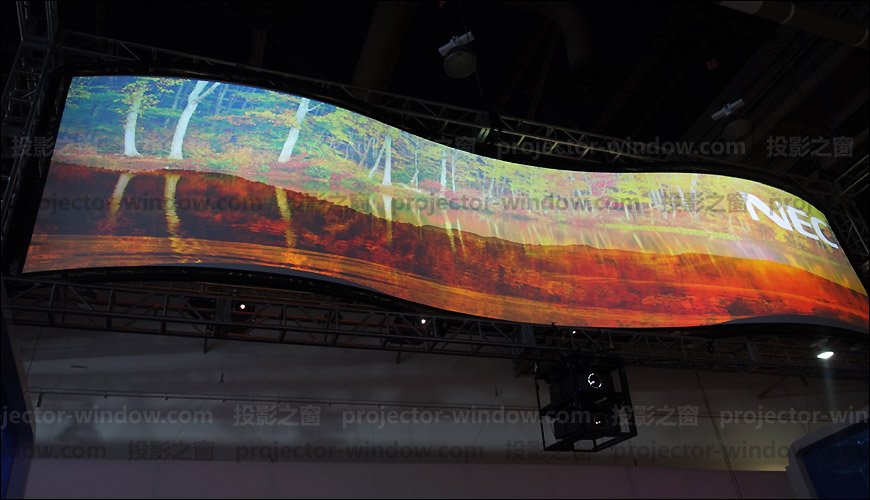 NEC 6000流明WUXGA激光光源投影機(jī)與4K系列液晶大屏幕平板顯示機(jī)型驚艷亮相,展項(xiàng)還包括各3臺(tái)雙面投射曲面屏幕方案以及短焦、超輕投影方案