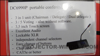 DIS數字會議系統是特地為大會討論、投票和同聲傳譯而設計的系統。除了提供一個聲音增強系統給使用者之外,它還能依照使用者的要求,用不同的操作模式,來管理會議討論、會議投票、同聲傳譯和語音消息分配系統。 展會同期還展示了 麥克風管理和討論系統;同聲傳譯系統; 語音分配系統-無線和紅外; 會議投票和聽眾響應系統; 全數字的會議系統等。