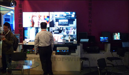 北京華控軟件技術有限公司致力于成為中國最強的可視化產品應用軟硬件開發商、整體解決方案和服務的提供商:多通道無縫邊緣融合系統的音視頻相關集成服務、傳統拼接、虛擬實現(VR)、視頻會議等。專業從事大屏幕投影技術、視景仿真和可視化應用軟硬件的開發、制造與銷售服務的高新技術企業。本次北京華控軟件展示了高清遙距教室系統、華控高清現場實況制作系統、高清數字融合系統等系統解決方案。 |