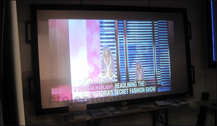 本次屏煌科技展示了能同時兼顧高清電影/3D電影觀看的超豪華滾動式家庭影院屏幕,一屏兩幕,它是可以讓家庭影院愛好者用正面的高清屏幕來觀看正常的高清電影,通過遙控器一按,屏幕會自動滾動過來,將用噴涂有高清3D銀灰光學屏幕漆的一面轉到前面,用來觀看現行最為時髦和流行的偏振3D影片,是高級家庭影院愛好者的首選。此外,超豪華滾動式家庭影院屏幕可以加工到最大200英寸。北京屏煌科技有限公司是美國液體屏幕公司產品在中國的總代理。美國液體屏幕公司是專門生產和銷售用于大屏幕、超大屏幕融合投影屏幕光學涂料的美國公司。 |