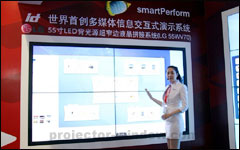 在德浩等離子展區,有專業的等離子拼接展示的系統解決方案:60吋PDP等離子(DH-6010P)無縫拼接大屏幕+ICT世界首創多媒體信息交互式演示系統、42吋MPDP等離子無縫拼接大屏幕(OPM-4260)+ICT世界首創多媒體信息交互式演示系統。