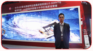 展示了55寸LED背光源超窄邊液晶拼接系統(LG 55WV70) |