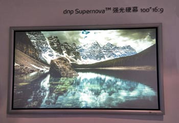展會另一亮點是丹麥dnp 最新研制的170英寸光學正投屏幕在中國市場的首次亮相。該產品是一款dnp