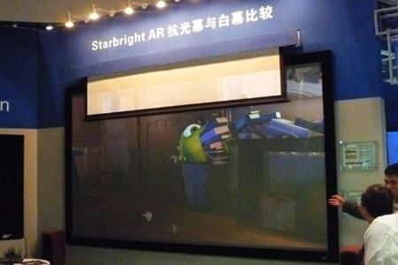 此次,億立屏幕展示了旗下豐富且強大的產品線,包括StarBright AR光學抗環境光幕、可變比電動框架MMR系列屏幕、億立IW系列墻內隱藏式電動幕、PM電動繃緊幕-5D系列、StarBright