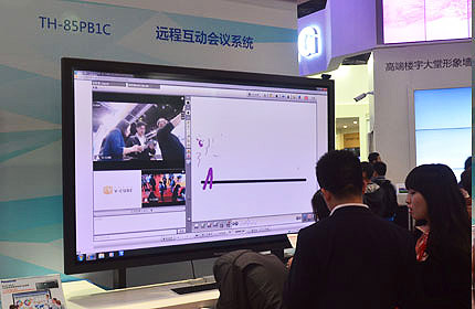 松下交互型高清晰度等離子顯示器能夠成功的運用于互動會議系統當中,其無需驅動隨時使用、書寫流利自然、遠程控制聚光筆、最多支持四人同步書寫等特色贏得了不少用戶的認可。該系列產品擁有103英寸與85英寸兩種規格,適合應用于發表演講、遠程會議、白板功能、在線研討會等多種場所。