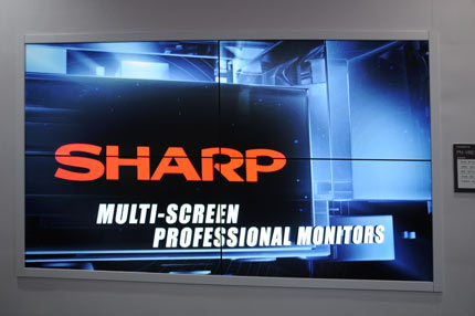 由4臺PN-V601A組成的2x2超窄邊液晶拼接墻格外引人注目。夏普提供的60英寸液晶拼接單元是拼接顯示器中的最大尺寸,采用超窄邊框設計,拼縫6.5
