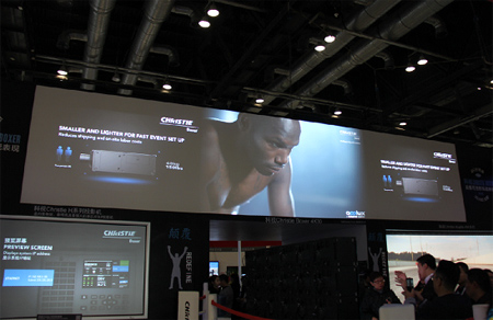 TruLife™圖像處理,可提供最高位深度和最快的幀速率。展位設有三臺邊緣融合的科視Christie