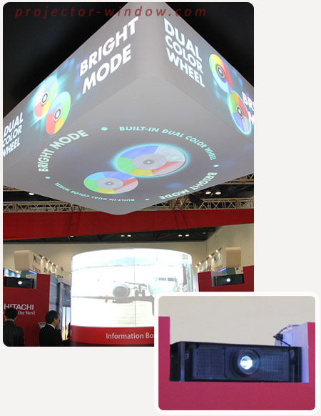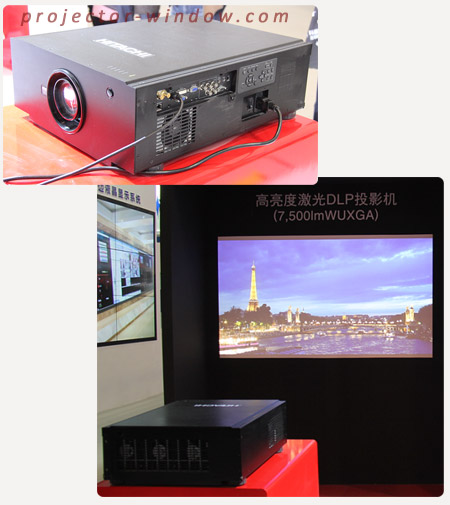 日立展示了最新的高亮度激光DLP工程投影機,亮度達到7500流明,WUXGA分辨率,其畫面絢麗奪目,可選鏡頭,支持垂直投影和3D投影。