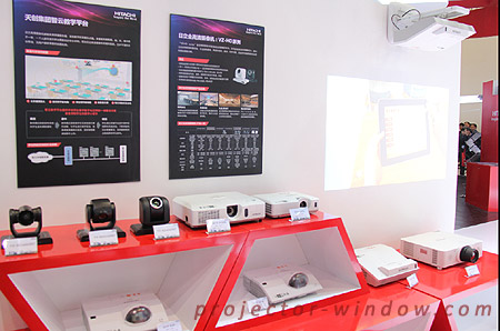 日立展示了即將發布的液晶工程投影機,其具備7000流明亮度、WUXGA分辨率,還支持HDBaseT遠距離信號傳輸。