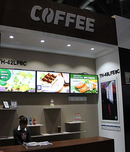 采用松下專業液晶顯示器搭建的數字標牌解決方案,模擬了咖啡館應用場景。對于餐飲行業,采用液晶屏幕實現價格顯示、菜品介紹展示更加靈活多樣而且效果出色,因而日漸流行。松下擁有多款專門針對此類應用設計的專業液晶顯示器。