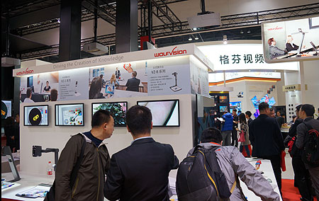 WOLFVISION還展示了主流的核心產(chǎn)品線,包括傳統(tǒng)的數(shù)字展臺以及吊裝的數(shù)字站臺,可以看到,其技術(shù)在不斷提升,顯示效果,操控感覺等方面都有長足的發(fā)展。