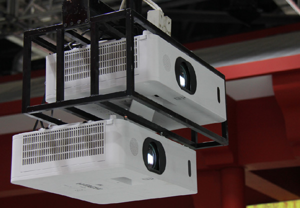通過使用兩臺(tái)5000lm投影機(jī)的疊加,實(shí)現(xiàn)更高亮度投影。以低成本適用解決方案。