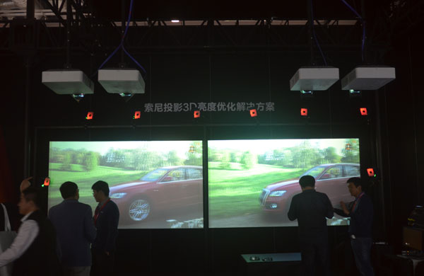 本展區采用4臺VPL-F530H新燈泡光源投影機進行對比演示,面對兩塊投影相同內容的屏幕,觀展者可立即察覺出應用3D亮度提升濾片所帶來的巨大亮度提升,而畫面質感依然清晰通透。此外,本展區應用創新型的3D增強現實顯示技術,投影畫面可實時跟隨觀展者的視角移動進行變化。此類投影解決方案十分適合汽車展廳、工業設計等領域用戶使用。