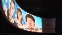 在展覽會現場,科視展示了奧運會上采用63臺科視數字電影投影機在鳥巢“碗邊”打出環狀畫面的模擬演示。利用2臺科視CP2000-ZX打出的“碗邊”背景圖像,這些圖像都經過變形和邊緣融合,周圍放映出協調一致、連貫無縫的圖像,吸引了眾多觀眾。