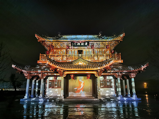 古典樓閣煥發魅力 贏康參與佛堂古鎮夜游投影