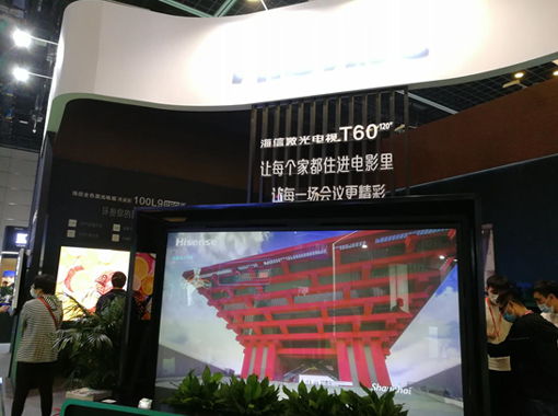 本次展會海信展出了4款激光電視以及一款全場景會議平板。激光電視作為海信的標志性產品,高亮度、精致的畫面與優秀的護眼能力是其優勢所在。