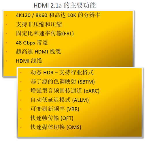 2.1a也支持多種靜態和動態HDR解決方案。很多游戲或電影、動畫都在內容方面導入了4K@120Hz,HDMI技術也將其導入到HDMI