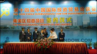 集美區(qū)政府負責人介紹說,集美區(qū)共簽約57個項目,投資總額達166.98億人民幣,簽約項目質量普遍較高,大多是機械、電子、服裝等集美區(qū)支柱產(chǎn)業(yè)項目,而且符合高科技和環(huán)保型特點。印天工業(yè)園區(qū)將于今年年底開始施工,計劃一年半內(nèi)正式投入使用。
