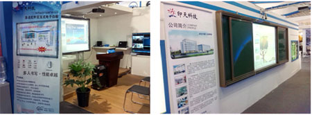 印天科技在紅外技術上一直是走在行業前列的,參展的MR系列多點紅外電子白板采用真多點紅外感應觸摸技術,國內率先突破五點觸控,多人書寫性能卓越,得到參展客戶的認可和肯定。此外,印天展出的L系列窄邊紅外電子白板,采用紅外感應技術,無需專用筆,手指、教鞭即可直接操作,多重觸摸,互動性強;同時,它是一款專為教學設計的產品,邊框僅為40mm,可以實現書寫面積最大化;而且在本次展會上,特別以電子白板+黑板組合的解決方案形式呈現出來,更加形象、直觀,吸引了大批客戶的眼球。
