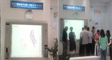 IWB交互式系列白板最新產品,受到極大關注。有效改善現有紅外技術缺陷,可同時支持十人同步觸控、書寫、繪畫更加自由流暢、超窄邊框,性價比更高等。集合眾多優勢的新升級紅外電子白板一經推出,就得到了客戶朋友們的青睞,本次展出的十點紅外SR-9093、SR-8083兩款不同尺寸白板,吸引了客戶紛紛體驗。