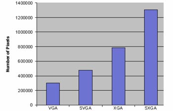 這個圖表顯示SXGA投影儀的分辨率要比它的VGA配對物的大四倍。