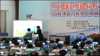 會(huì)議期間,來(lái)自上海市嘉定區(qū)實(shí)驗(yàn)小學(xué)的師生在現(xiàn)場(chǎng)演示了互聯(lián)課堂的使用效果,在利用交互式白板、筆記本和豐富教育課件的教學(xué)中,可以看出學(xué)生們的積極性和與教師的互動(dòng)性較傳統(tǒng)手段有著明顯的不同,這些對(duì)于幫助學(xué)生們具備21世紀(jì)的技能,以適應(yīng)未來(lái)激烈的全球競(jìng)爭(zhēng)環(huán)境確實(shí)有著明顯幫助。也讓在場(chǎng)領(lǐng)導(dǎo)、嘉賓在輕松愉快的氣氛中感受到了教育信息化的優(yōu)勢(shì)與魅力。