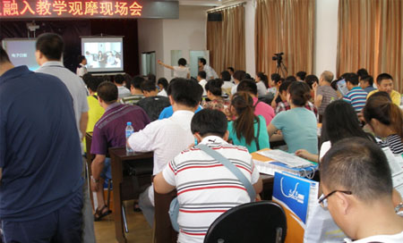 天仕博專業講師形象生動、有親和力地講解,讓更多的老師領略到交互式電子白板的優勢和特點,極大點燃了教師使用交互式電子授課的熱情,紛紛邀請我司講師進校做全員培訓。特別是處于云教育應用技術尖端的“智動課堂”,通過操作PAD展開一系列基于問題的數字化學習、基于資源的探究性學習的教學活動,創設了整合交互技術、無線技術、多媒體技術、智能終端技術環境下的數字課堂環境,給所有觀摩領導、教師以耳目一新的感覺。