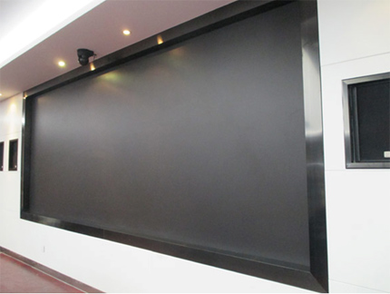 新疆電力公司大樓晨會(huì)室設(shè)立于二樓, 采用美國(guó)LuminoZ整張無(wú)縫進(jìn)口光學(xué)背投屏幕(5米*2米),采用2*1融合,屏幕本身為淡黑色,屏幕為硬質(zhì)但可卷曲,并且能夠完美的還原各種投影顏色,特別是純正的白色。美觀大氣。