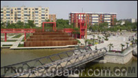 [投影之窗] 天津市橋園公園北起河東區衛國道,南至盤山道,東到天山路,西至昆侖路,占地面積22萬平方米,整體呈扇形布局。橋園公園以“橋”命名,因其園內有連接水域的平橋、拱橋16座,是市內擁有橋梁最多的一座公園,水域面積將占到整個公園總面積的三分之一。
